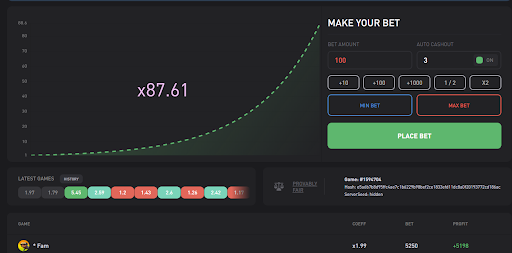 The trick here is to withdraw the bet after the odds have become tempting enough, but before collapsing to zero. Precarious mode – in most cases, the crash closes long before the coefficient even gets close to one. But on CSGOPolygon, you can at least be sure that this happened thanks to pure randomness, and not the insidious twist of the bookmakers. Attention to the screenshot!