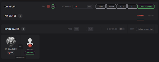 The next game mode on the CSGOPolygon gambling website is coinflip. A heads-up duel, the chance of winning in which is calculated depending on the size of the bet. It is especially pleasant that each player immediately sees the opponent with his bet and can choose which duel he wants to participate in. The system controls the range of bets and will not allow participation if there is a sufficiently large gap.